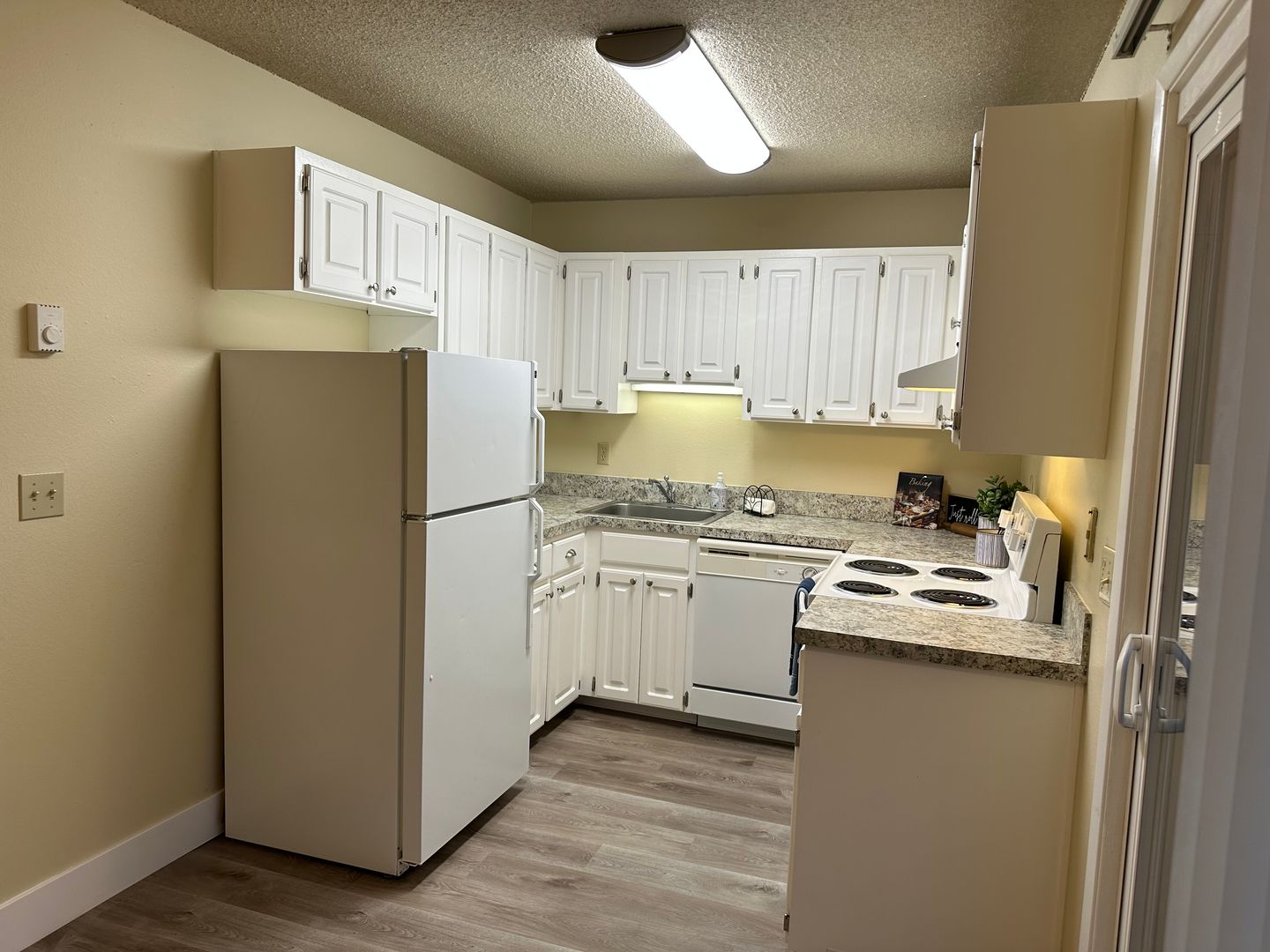 Discover this beautifully updated 2-bedroom townhouse located in a peaceful and well-maintained community. The apartment features luxurious vinyl tile flooring and abundant natural light throughout. Enjoy the spacious living room, a cozy kitchen with a breakfast nook, and a 6-foot patio door that enhances your living space. Convenience is key with an in-unit washer and dryer, assigned parking, and water, sewer, and garbage included. Located on the Trimet Bus 33 route, The Meldrum Place offers a friendly and welcoming neighborhood. Experience comfort and community in this exceptional home.